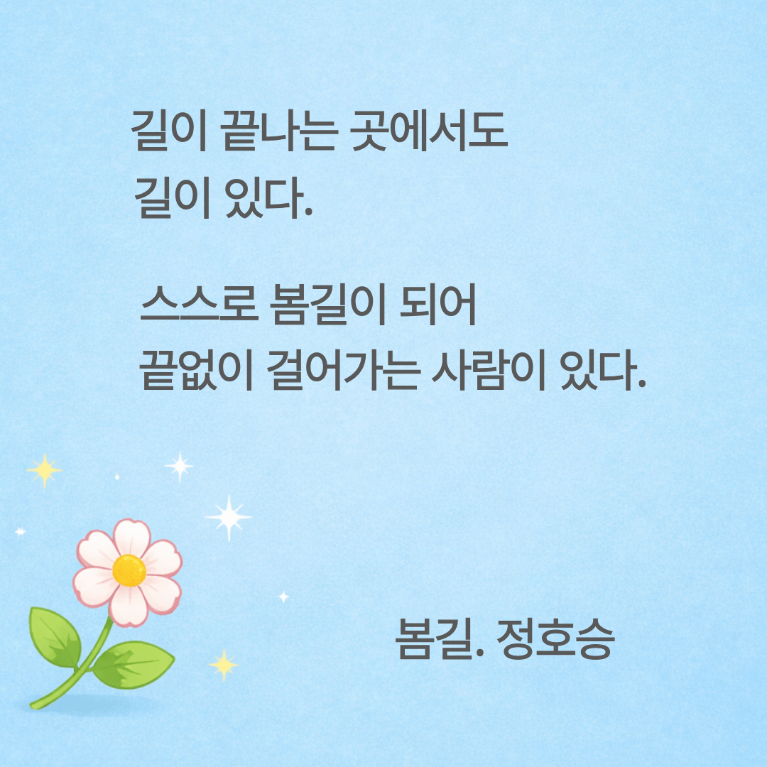 아래는 제가 좋아하는 정호승 시인의 봄길 중 일부분입니다.