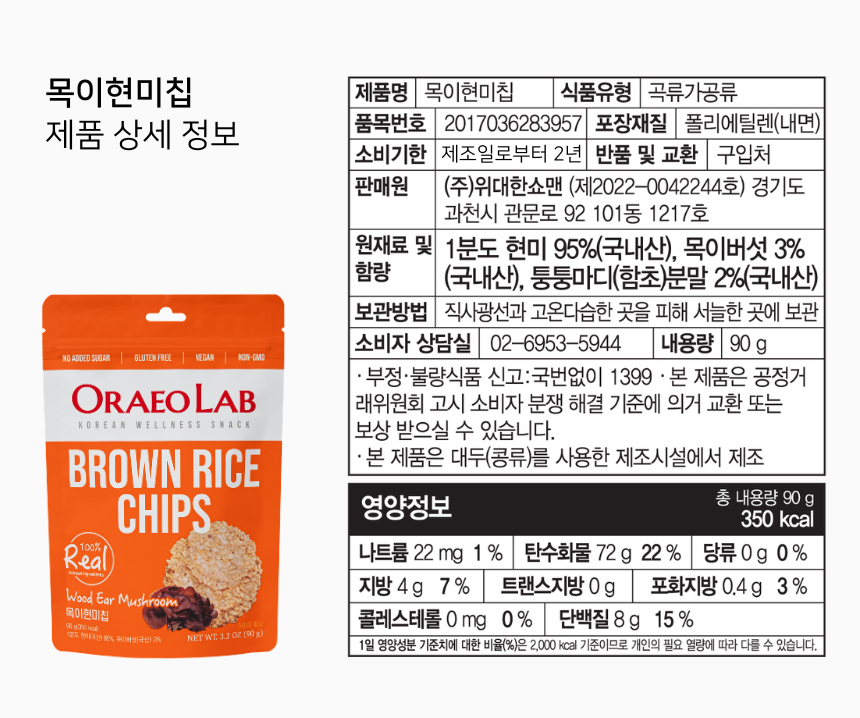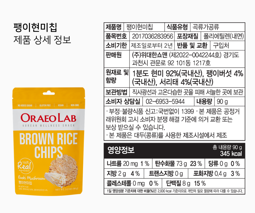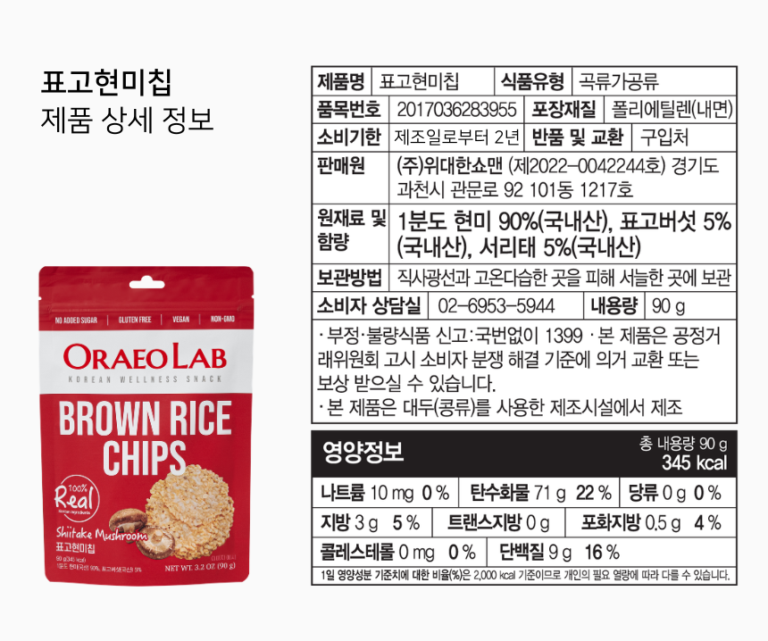 ▶︎ 당류 함량(표고현미칩 기준) : 0g