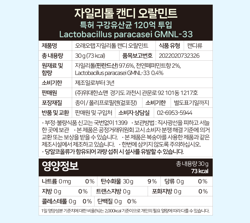 ▶︎ 오랄민트 : 특허 구강유산균 120억 투입
